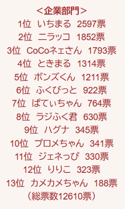 企業部門に参加した13キャラクターの中で、弊社マスコットキャラクター「ふくびっと」は第6位となりました。